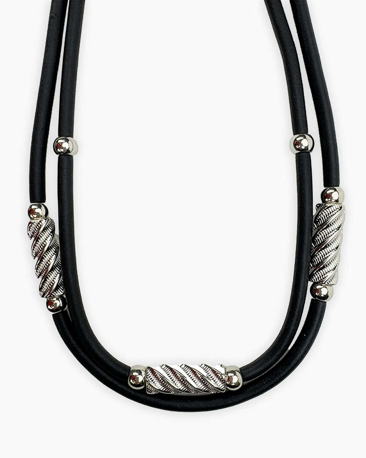 Colierul Magdy Aria di Notte este accentul de rafinament ideal pentru ținutele tale. Poartă-l pentru a complimenta decolteul unei rochii elegante sau pentru a oferi un contrast subtil unei cămăși albe, din poplin. O piesă versatilă pentru un look memorabil.
