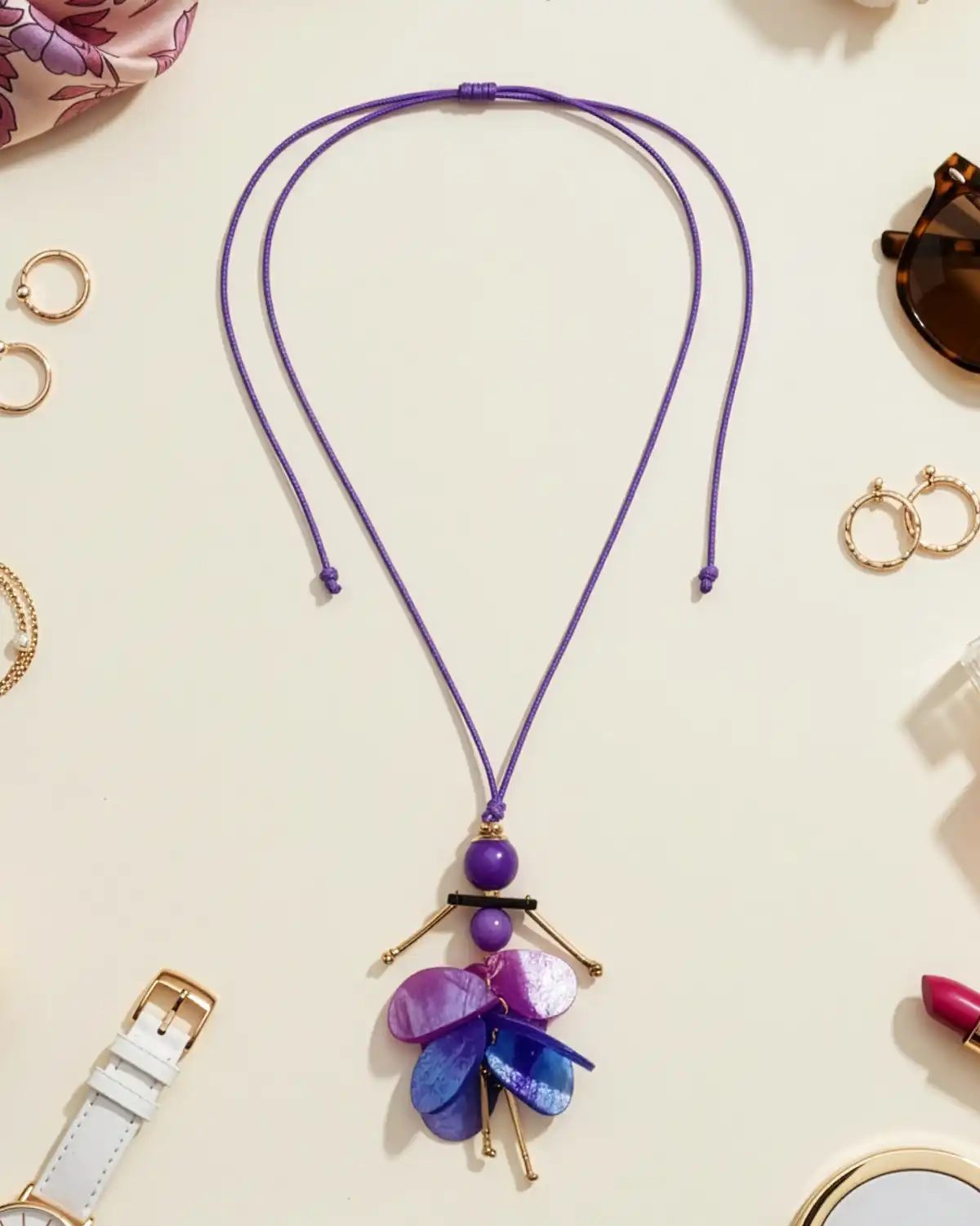 Colierul Magdy Courchevel mov se integrează firesc în ținutele tale preferate. Asociază-l cu un pulover fin în nuanțe de bej pentru un contrast subtil sau poartă-l peste o bluză elegantă de mătase pentru a-i sublinia farmecul la birou sau la cină.