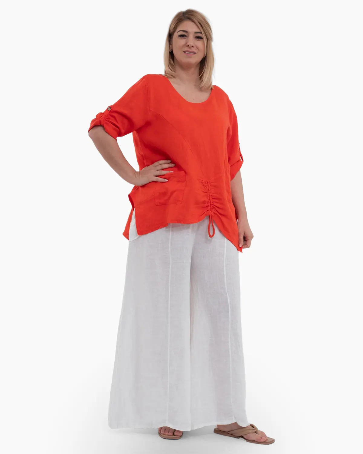 Aceasta bluza confectionata din in este o aditie luminoasa garderobei tale.