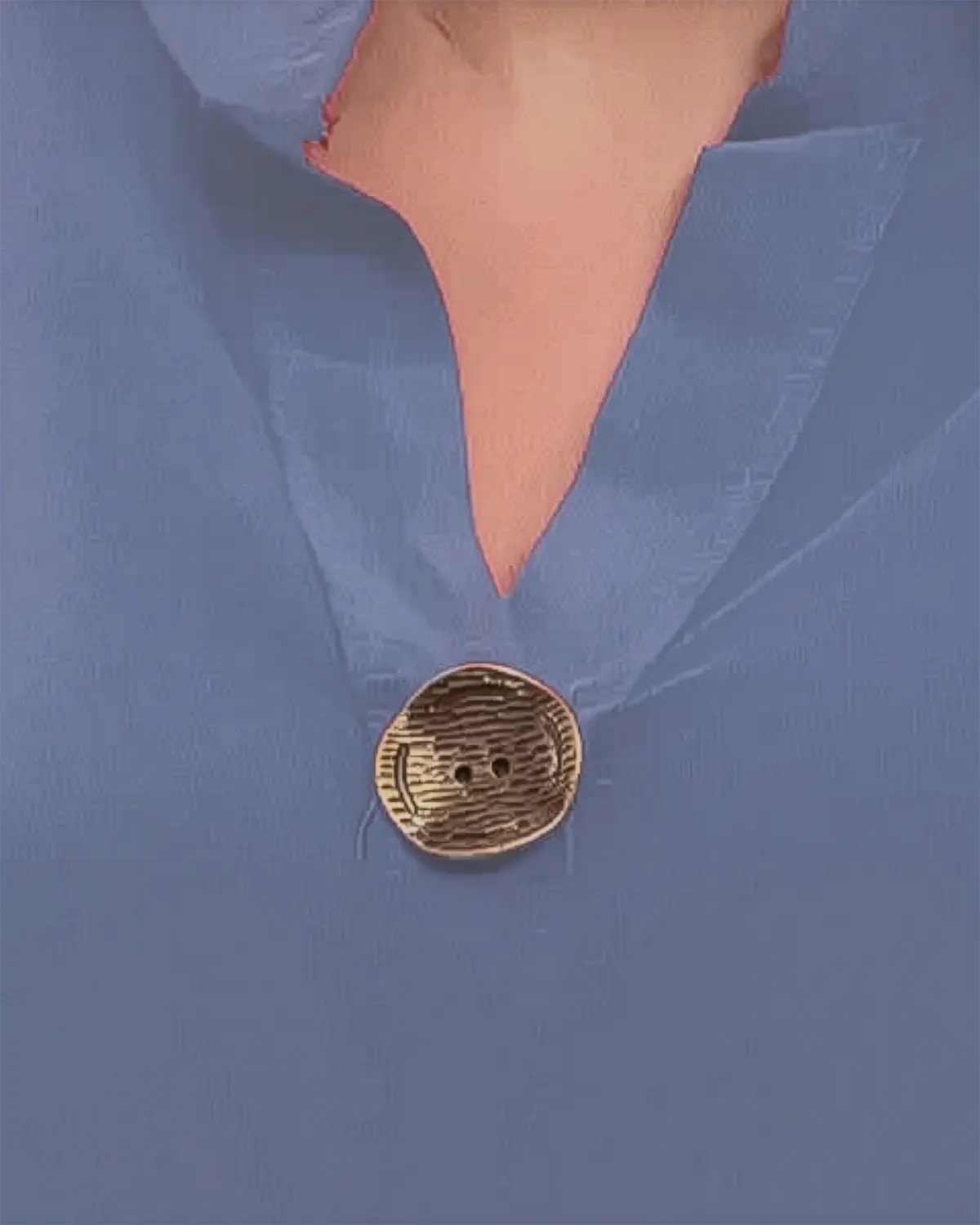 Bluză din raiat asimetrică cu mâneci lungi și nasture decorativ este o alegere versatilă și confortabilă, ideală pentru a adăuga un plus de stil oricărei ținute casual.