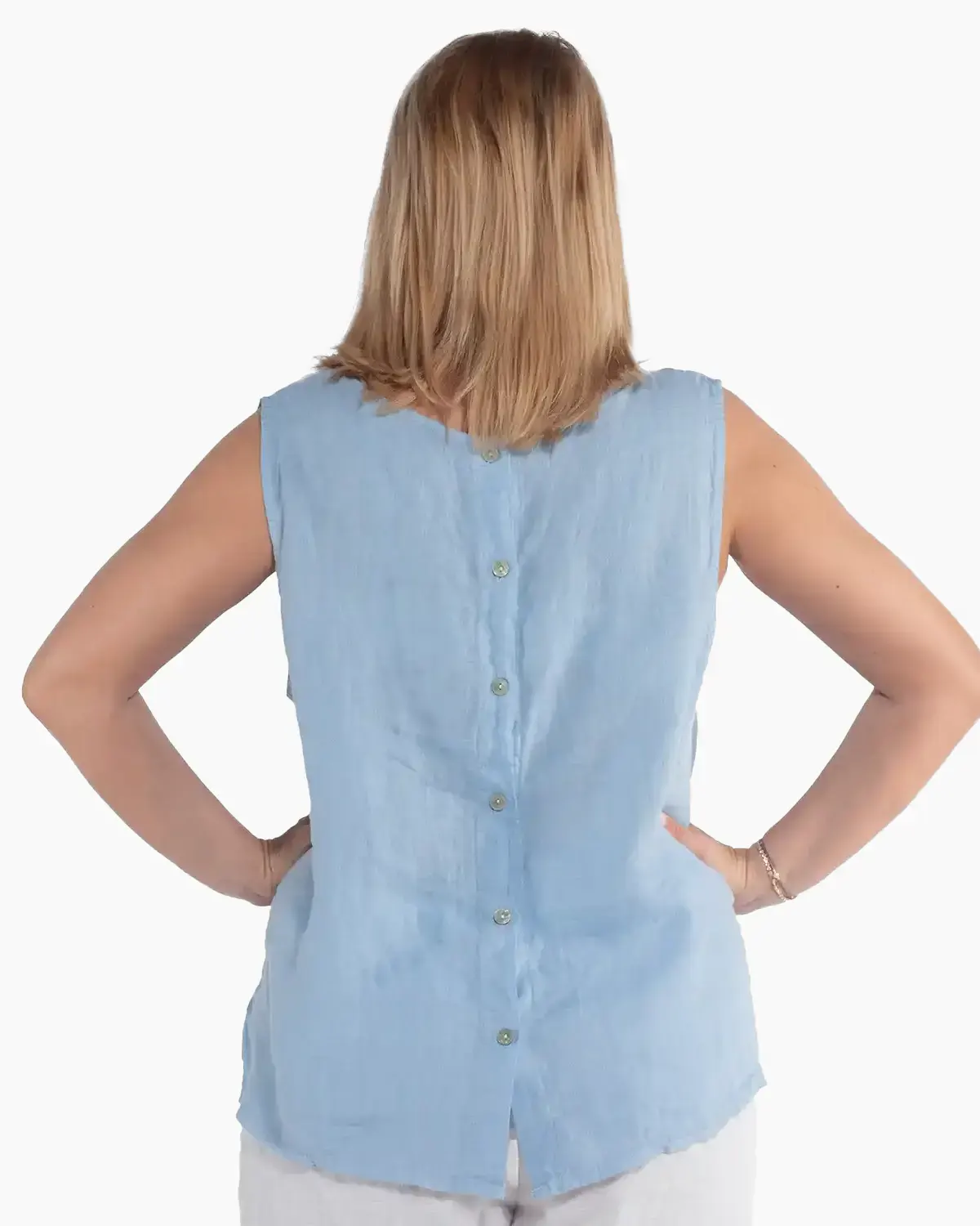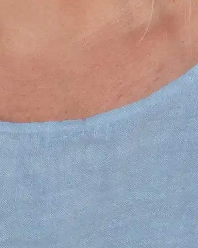 O bluză bleu vibrant din in natural este promisiunea unei veri pline de stil și confort.