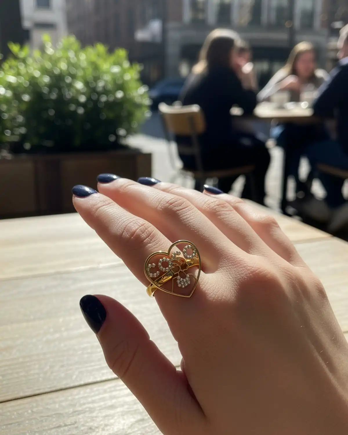 Inelul Magdy Luce di Coco este accentul de rafinament care desăvârșește orice ținută. Poartă-l pentru a eleva o cămașă albă impecabilă la birou sau alătură-l unei rochii negre clasice pentru un eveniment special. O sclipire aurie ce aduce un plus de eleganță.