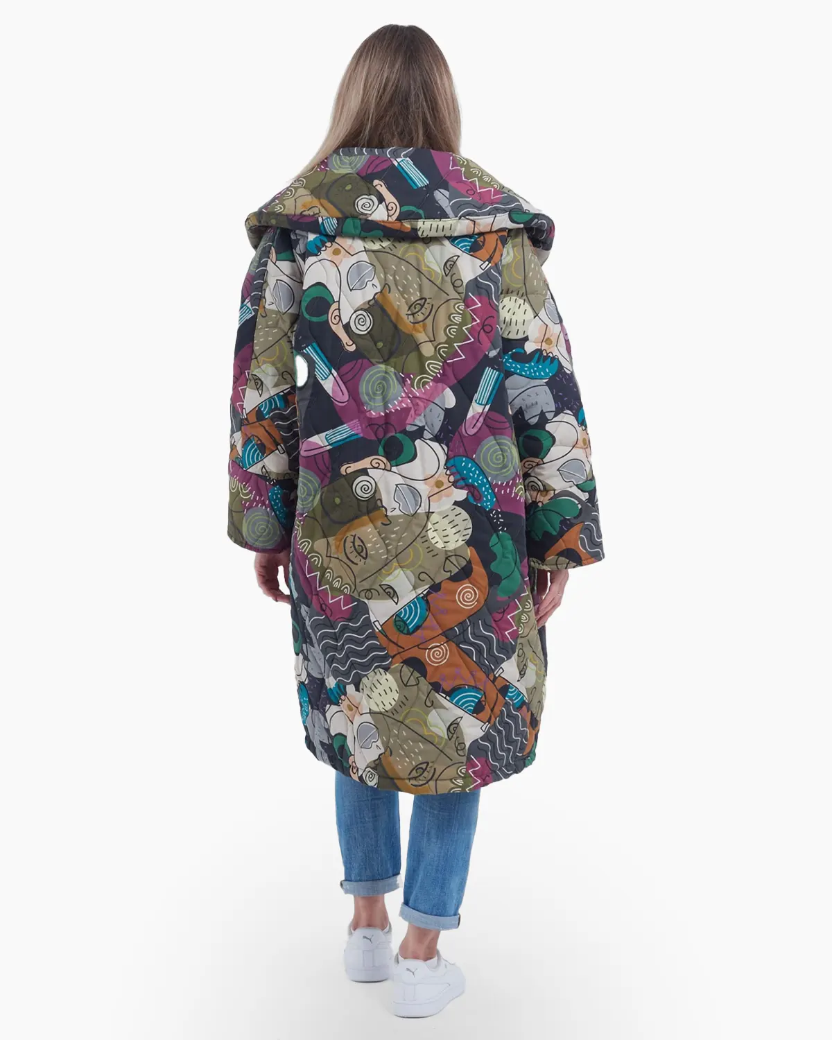 Geaca din bumbac cu guler rotund, in nuante kaki, visiniu si bej, iti ofera confort suprem si un stil modern. Imprimeul geometric multicolor adauga originalitate si o nota de eleganta rafinata, definindu-ti personalitatea unica si sofisticata.