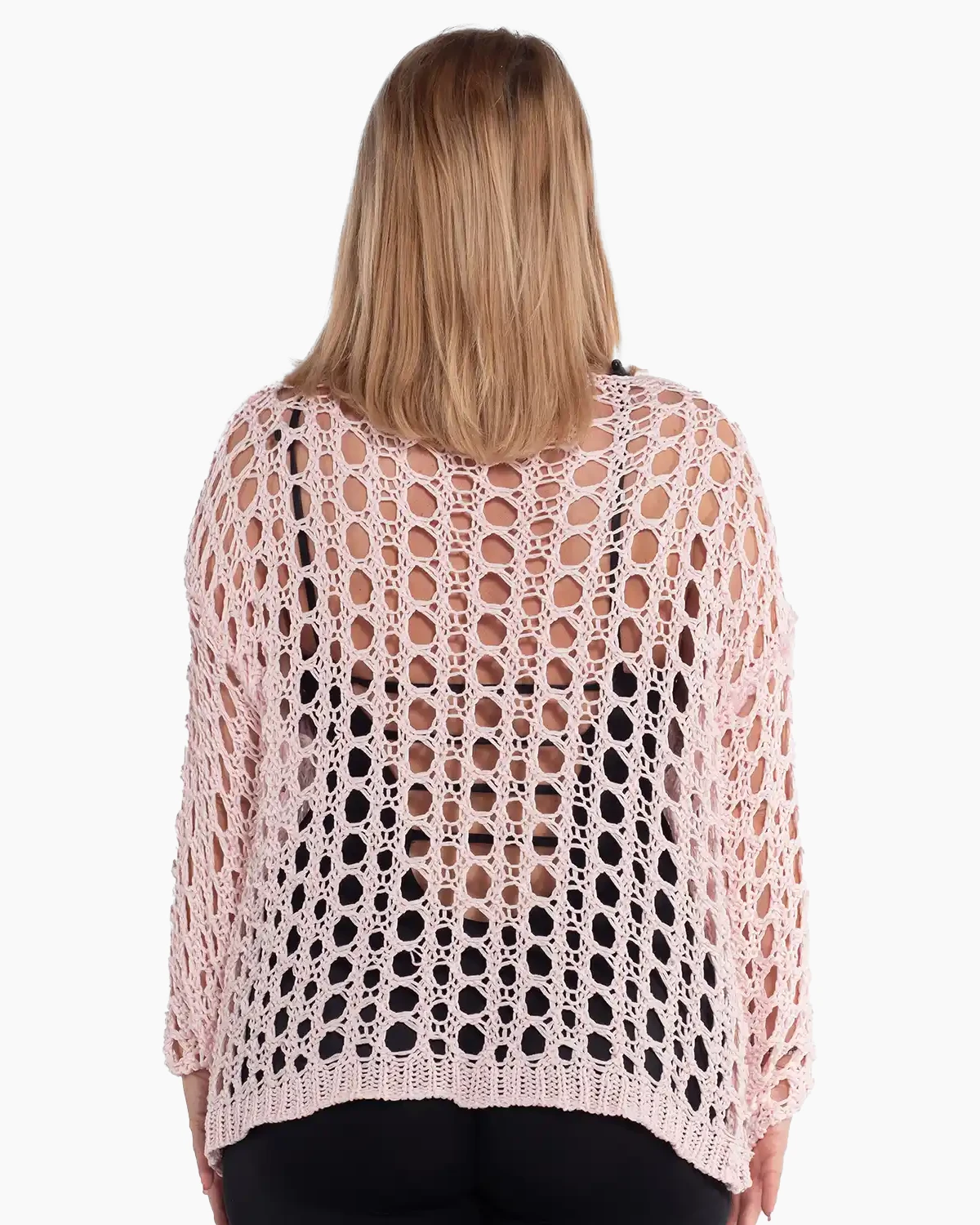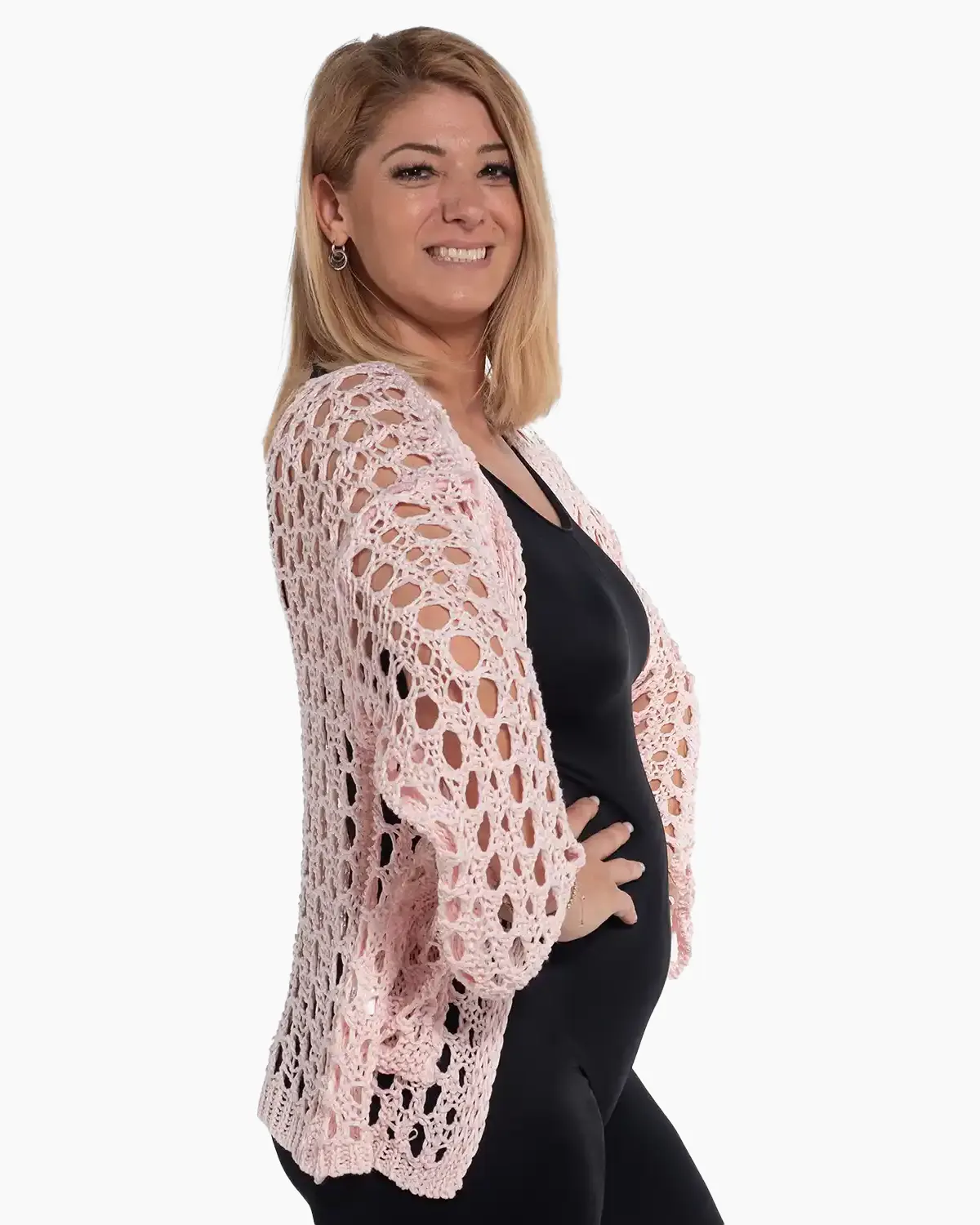 Jachetă aerisită roz pudrat, piesa cheie pentru un look boem relaxat. Designul său amplu, cu mâneci batwing și umeri căzuți, îți oferă confort și un aer modern. Decolteul în V și buzunarele practice completează perfect această piesă versatilă și feminină.