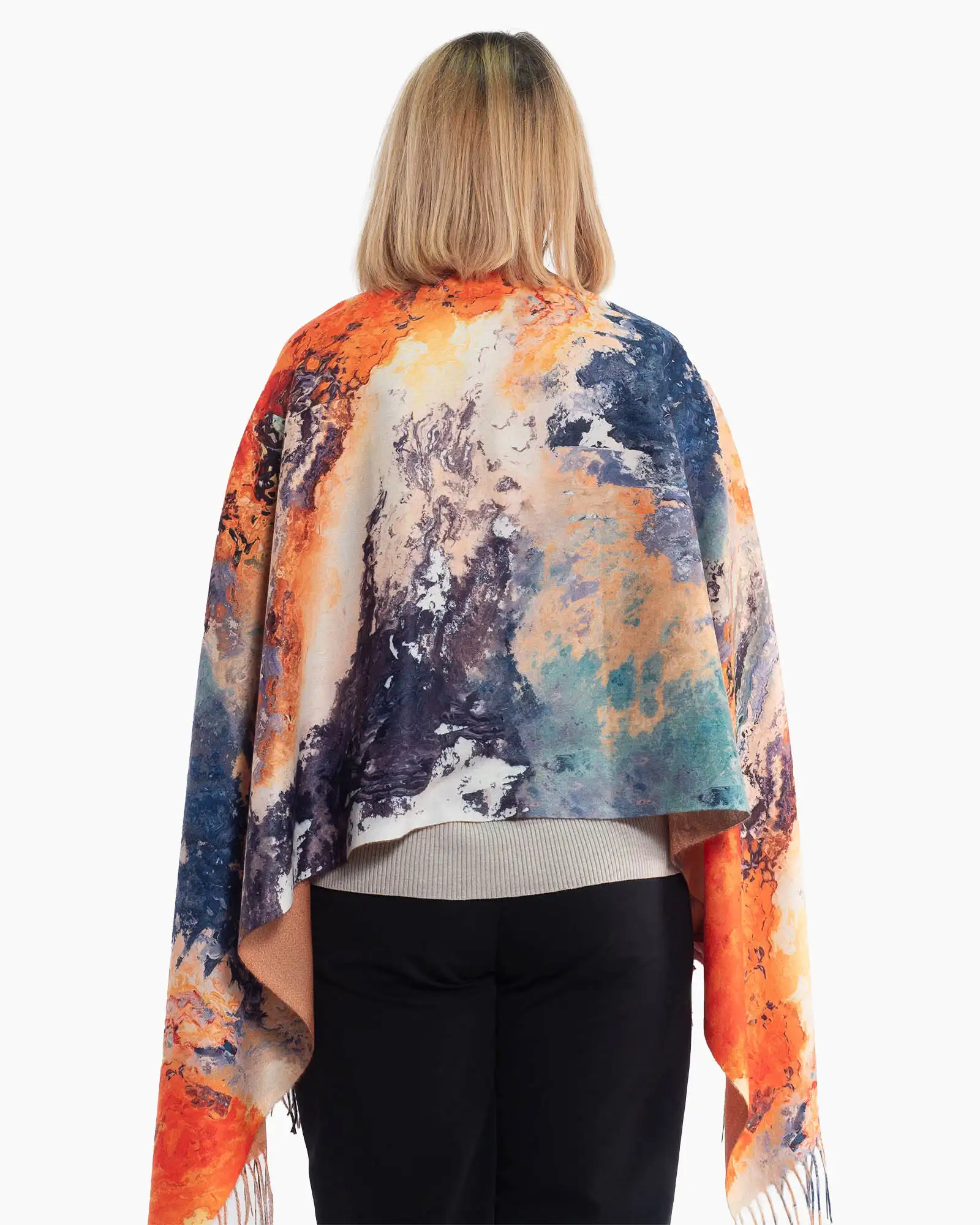 Eșarfă din vâscoză multicoloră, un accesoriu rafinat ce învăluie silueta într-o linie fluidă. Imprimeul abstract adaugă personalitate, iar franjurile lungi oferă un detaliu dinamic. Textura sa fină și lejeră o face ideală pentru a completa cu stil orice ținută.