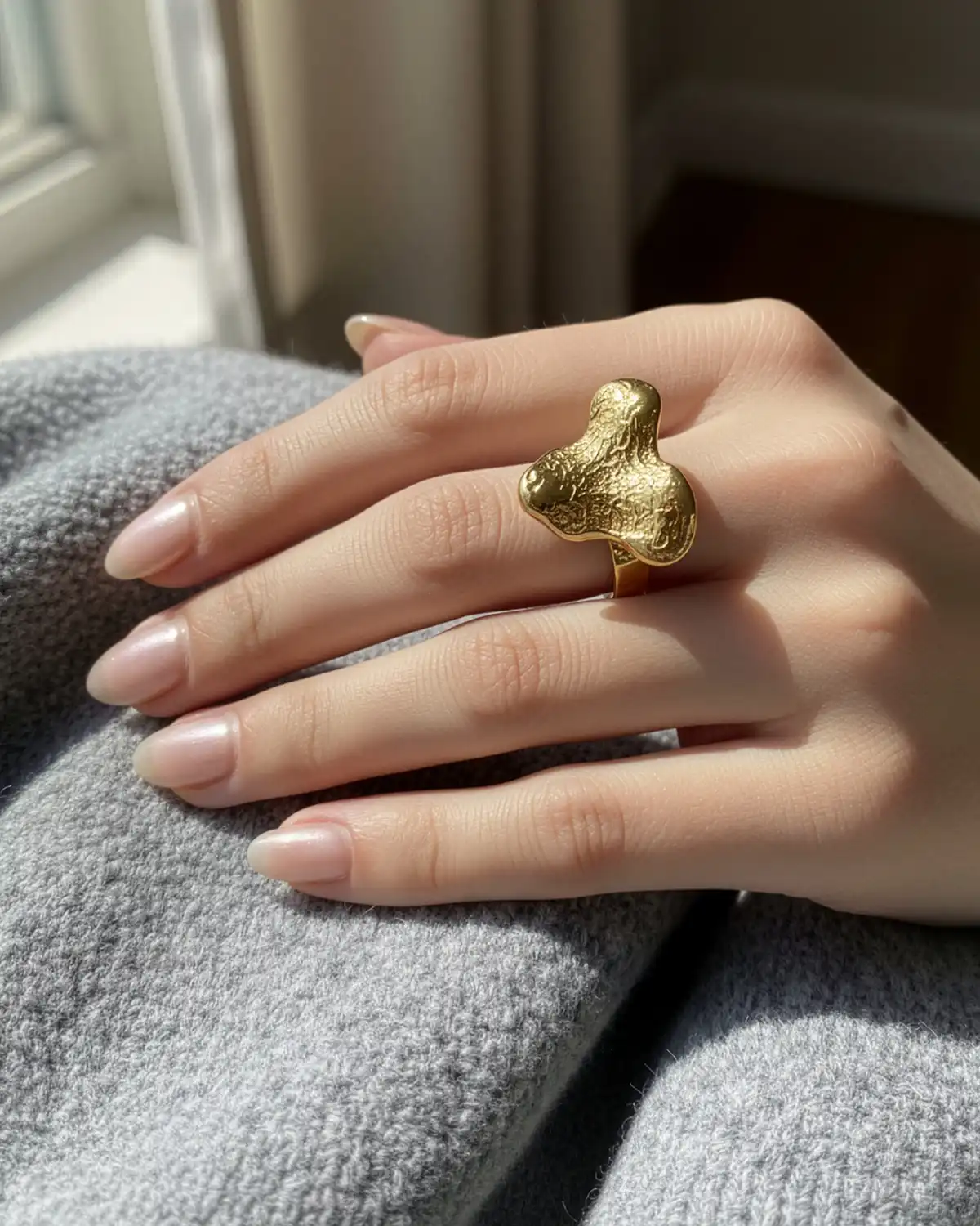 Inelul Magdy Ximena adaugă o strălucire caldă oricărei ținute. Asortează-l cu un pulover moale din cașmir în tonuri neutre sau cu o cămașă albă, impecabilă. Este accesoriul subtil care îți va completa cu eleganță look-ul, de la birou la cină.