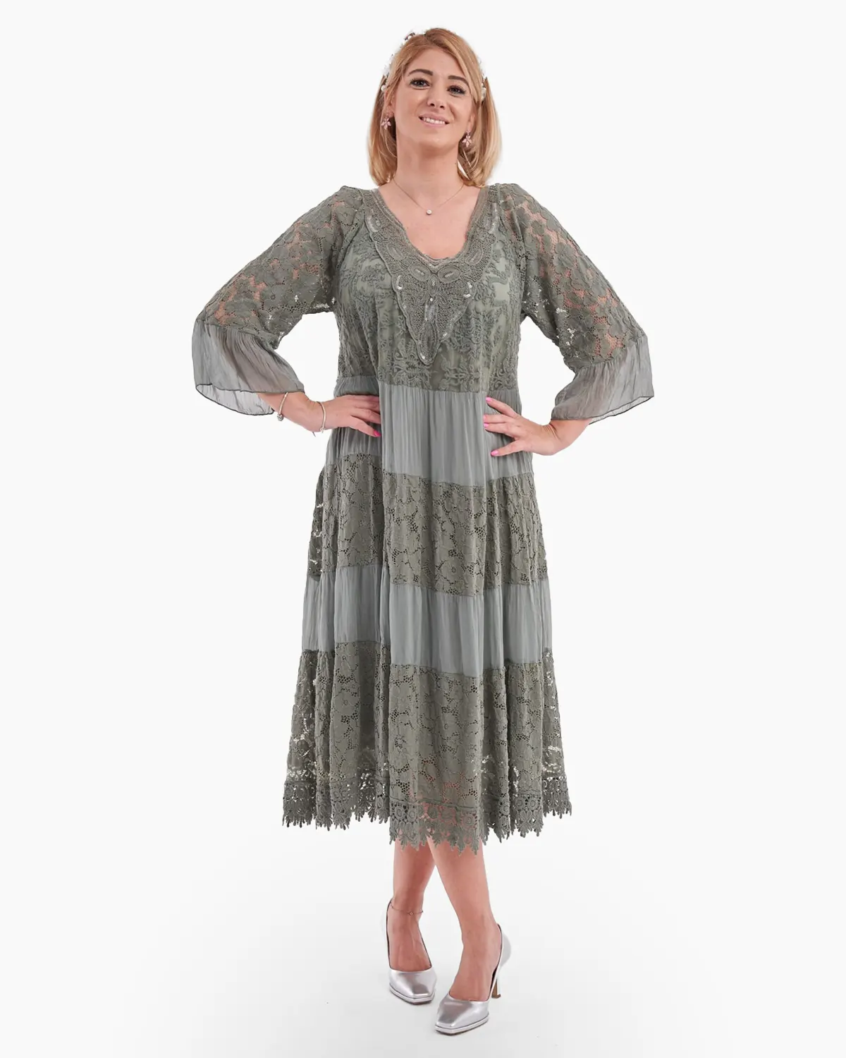Materiale: 38% mătase, 62% vâscoză, căptușeală 95% vâscoză, 5% elastan